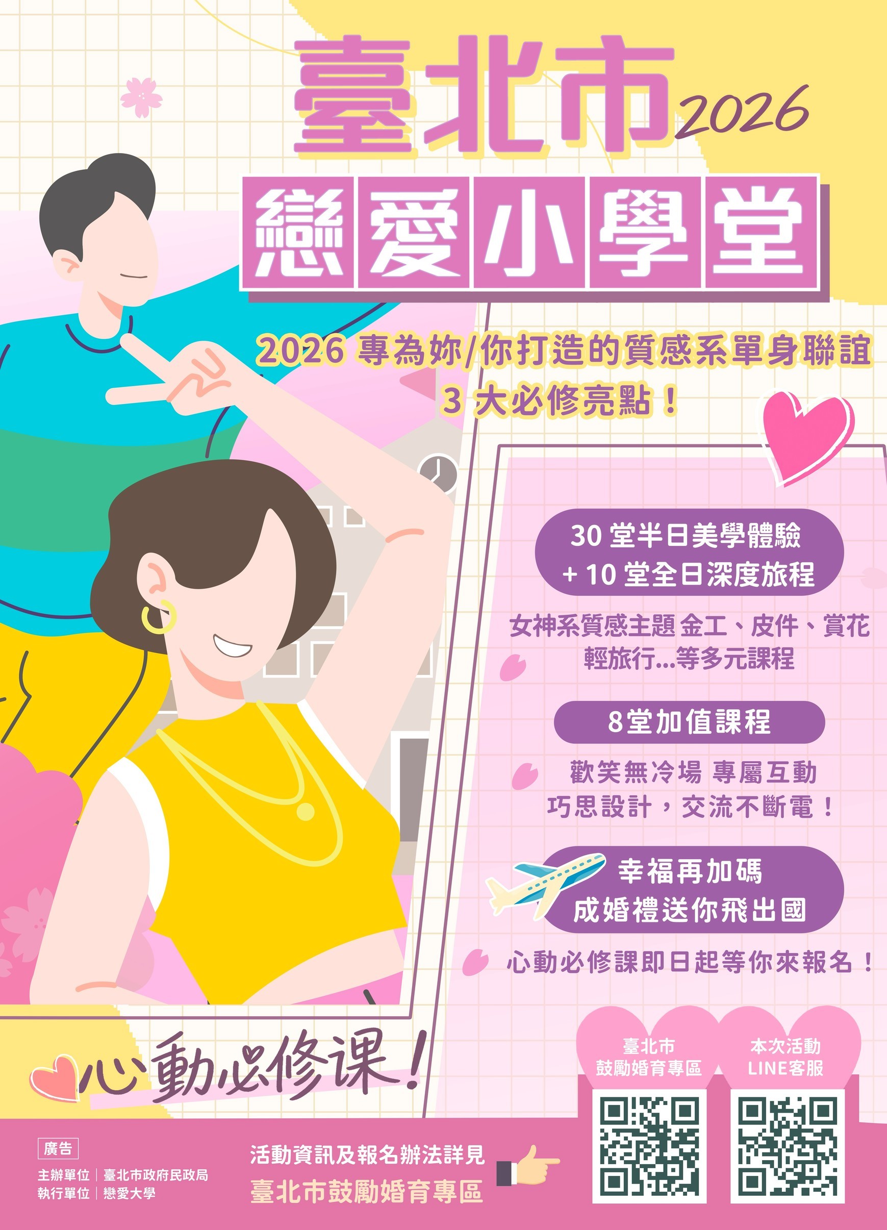 旨揭活動辦理期間為115年6月6日起至12月5日止,共計 40場次;凡年滿 25 歲以上在臺設有戶籍之單身朋友即可報名參加。活動採線上表單方式報名,第1梯次(第1至10
